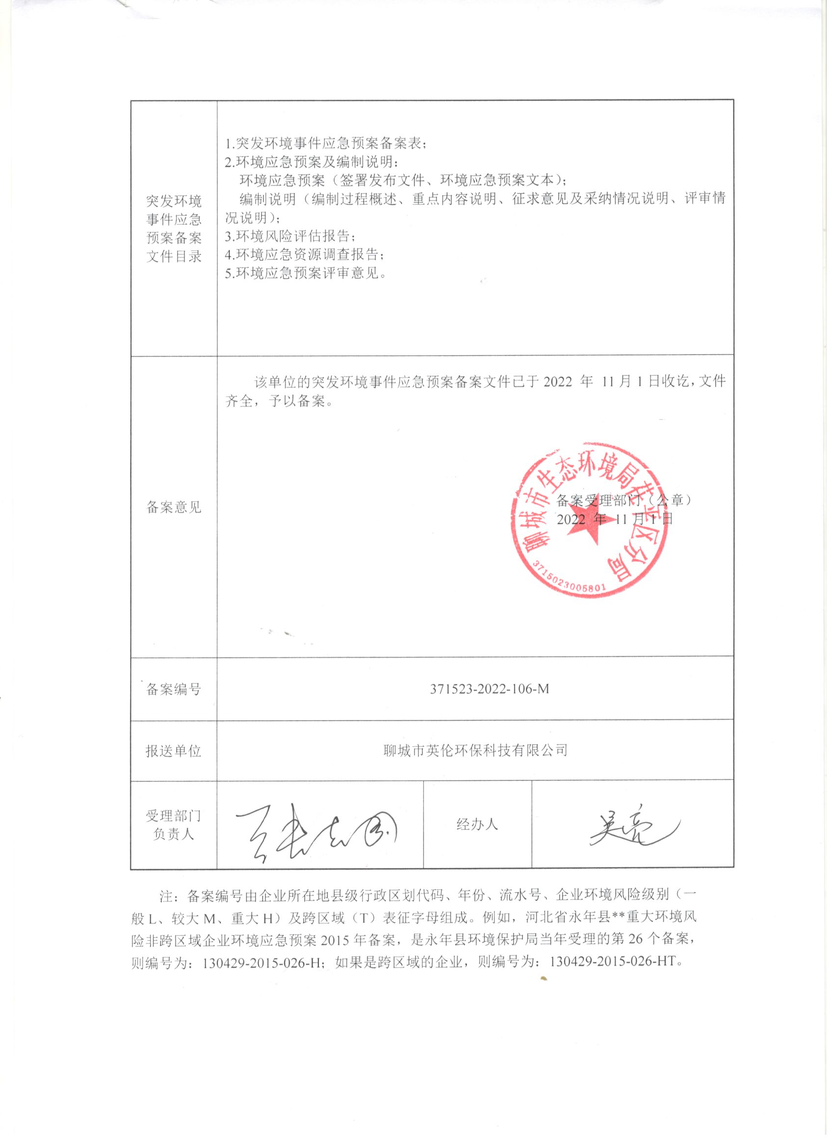 聊城市英倫環(huán)保科技有限公司 備案號: